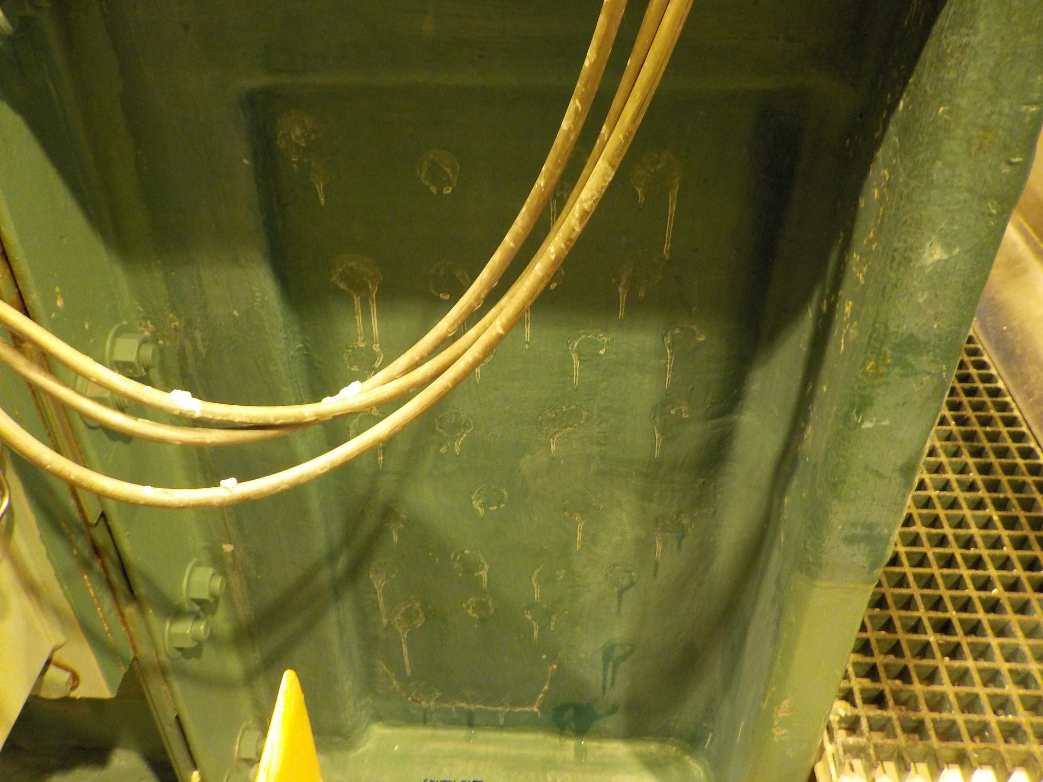 Analysis and review of the data collected by UTComp found no defects or damage to the support structures or pipe and nozzle connections of the tank. However, testing did reveal damage to two panels on the exterior of the tank, including cracks on the rear panel that had been previously undetected. UTComp recommended that the cracked panels be repaired or replaced.
